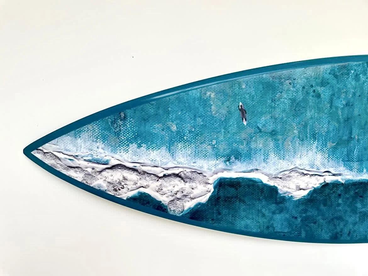 These surf art pieces are a collaborative project with Seascape Artist Gemma Lessinger, fine art printer The Logical Choice Group and surfboard shaper Rochfort Surfboards. Three Cornish based businesses are coming together to help reduce waste and protect our oceans.