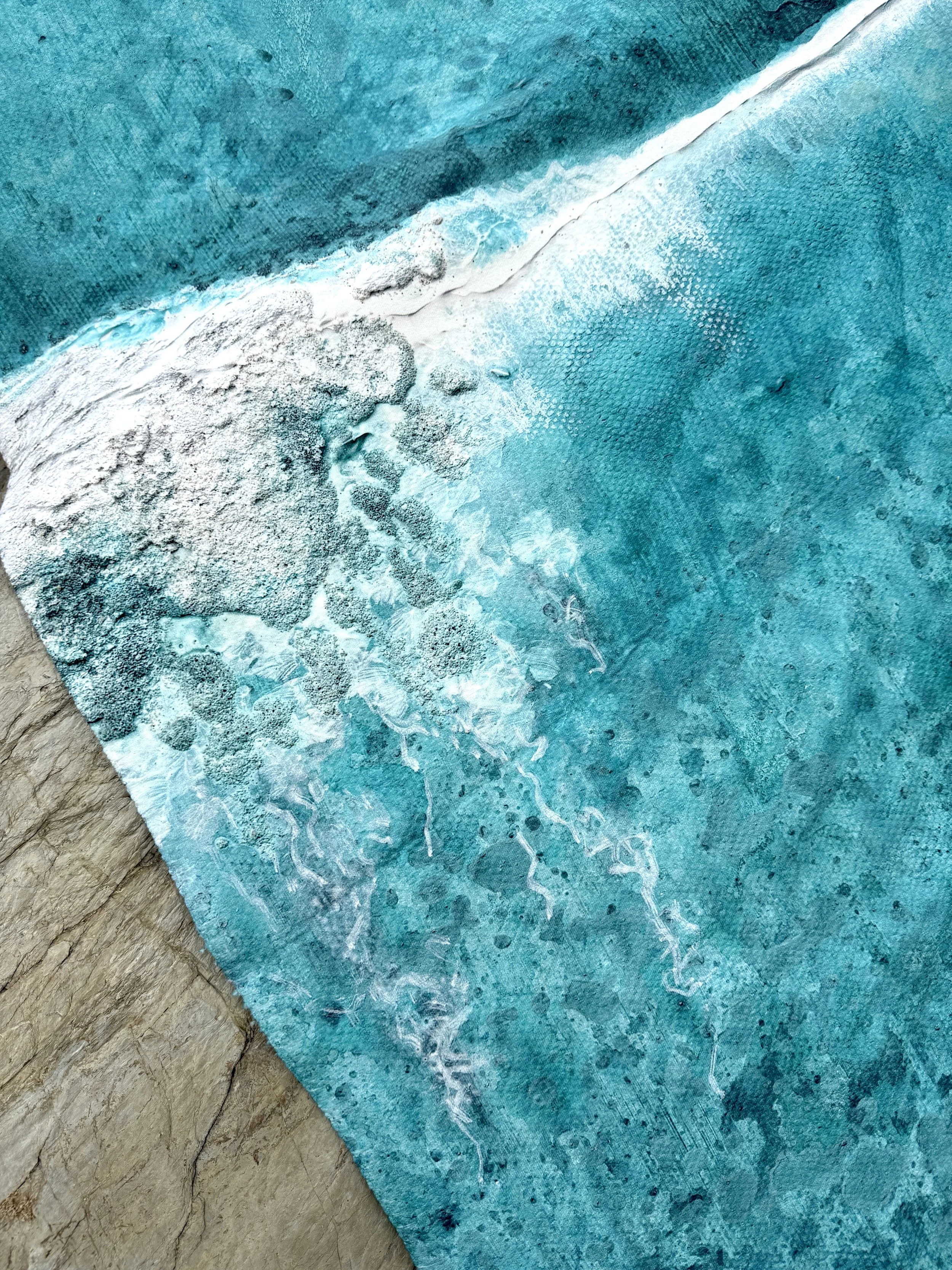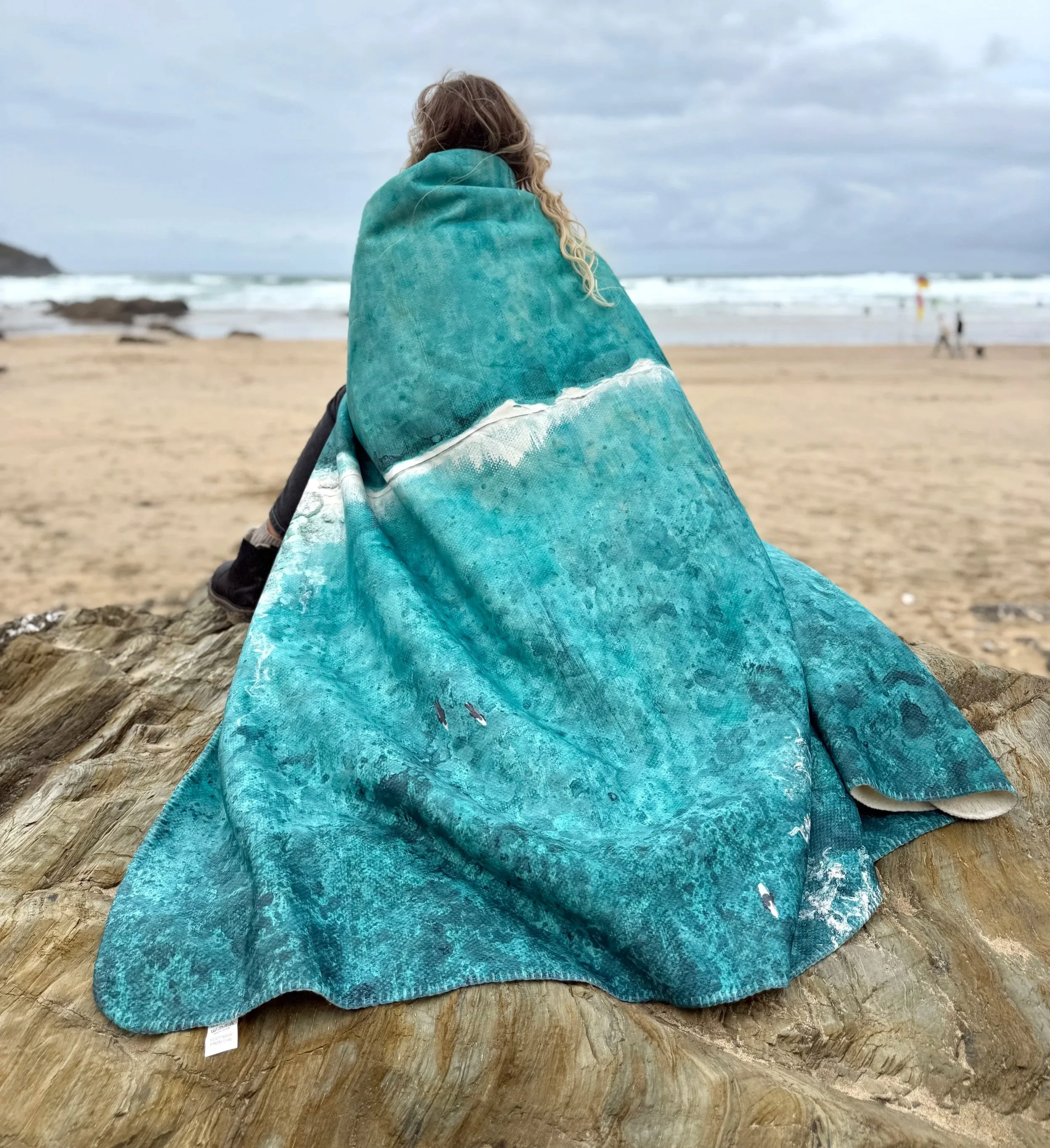 This ocean-inspired blanket began as a bespoke sample for a private commission — a way of translating the textures, tones, and emotion of my paintings into something you could wrap around yourself.