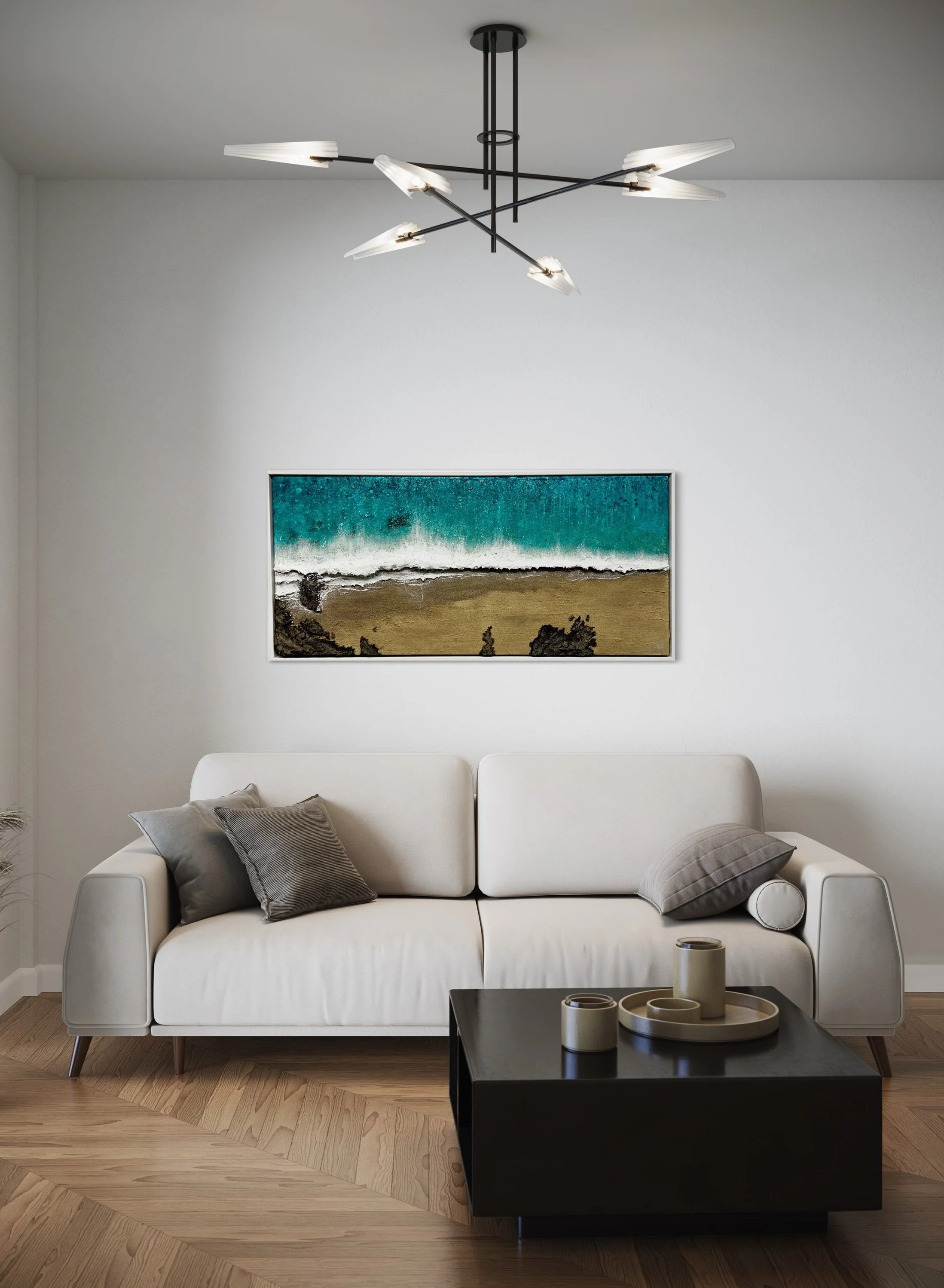 Infused with sand from the very beaches they depict and layered with fragments of upcycled materials, these pieces are both a memory and a message — a tactile homage to the wild Cornish shore.”